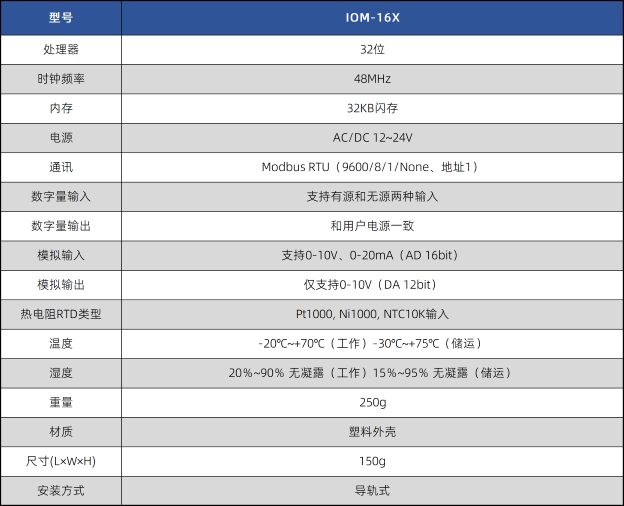 本产品采用主流的ARM核32位微处理器,支持Modbus RTU协议。既可以作为DDC、PLC等控制器的扩展IO模块,也可以单独使用。通用输入输出的设计极大地提高了设备的灵活性,节约成本。